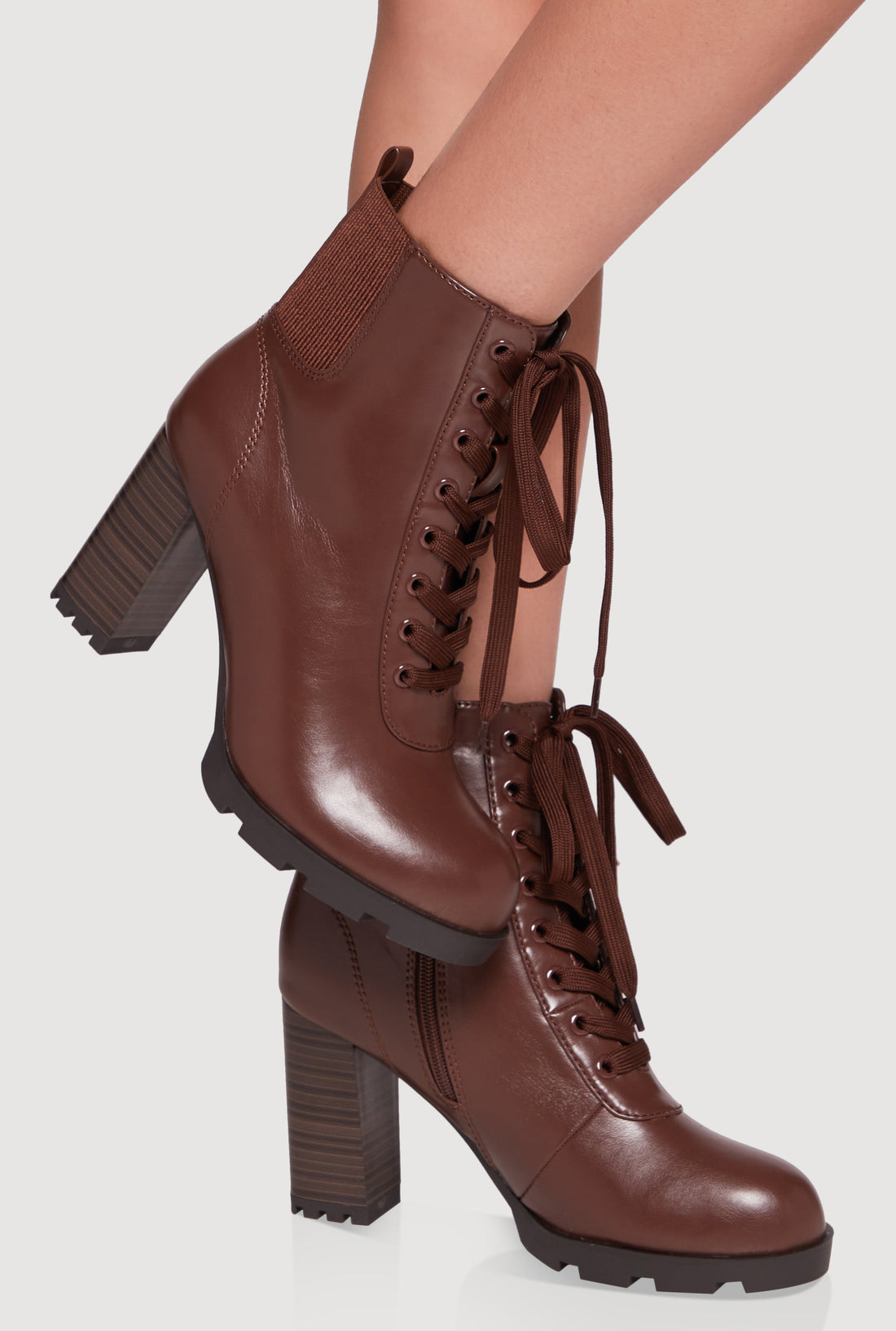 Side Zip Lace Up Block Heel Combat Boots