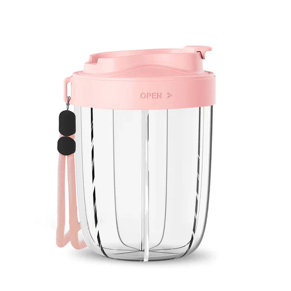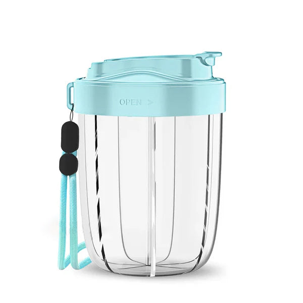 This pill organizer includes seven separate compartments for storing vitamins, supplements, or medications. Its compact design makes it suitable for daily use at home or while traveling. A secure lid helps keep items in place, and the transparent construction allows for easy visibility to check supplies. Lightweight and portable, it provides a practical way to organize capsules or tablets by day or portion, helping reduce clutter from multiple bottles or containers.