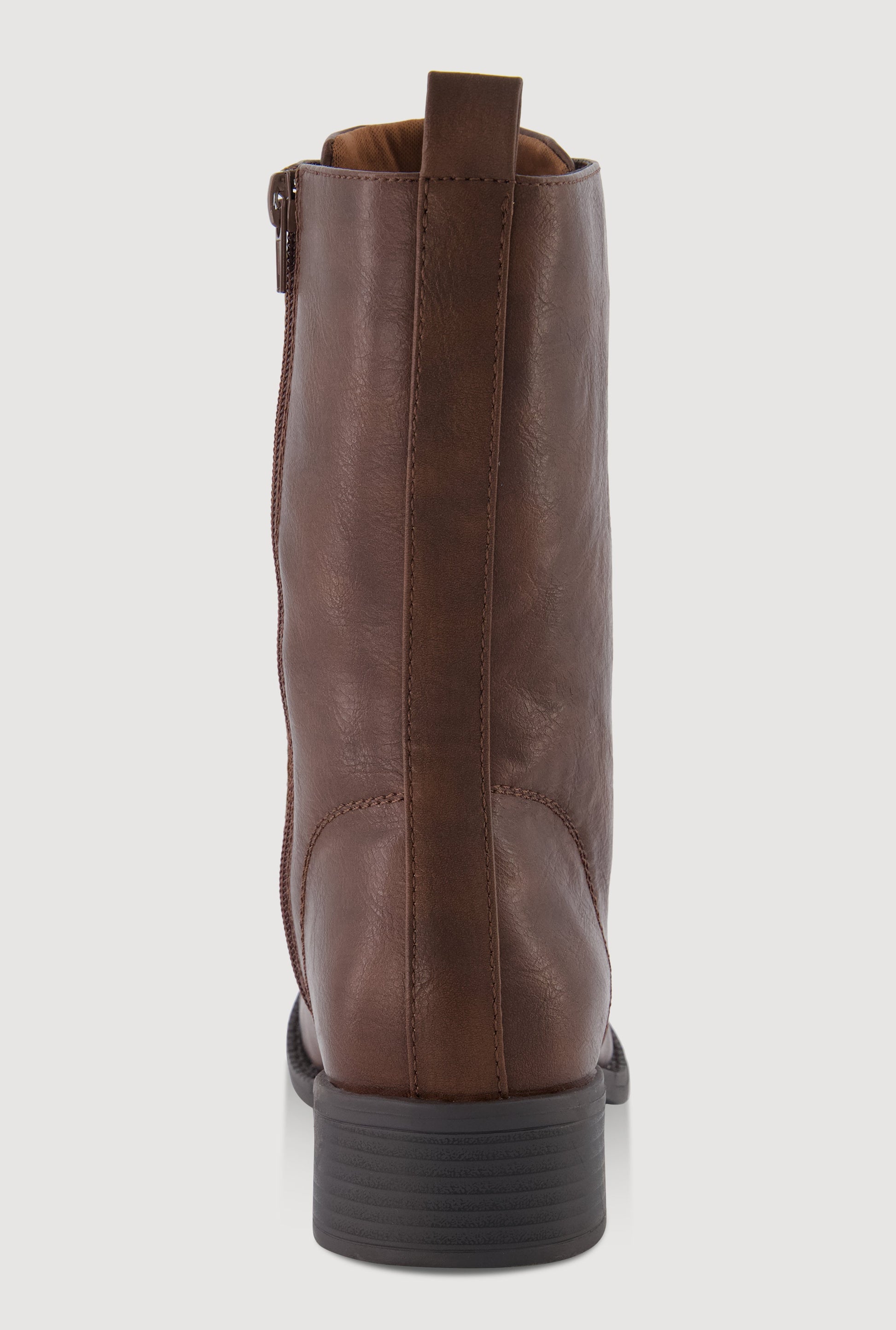 Step up your style game with these Faux Leather Lace Up Combat Boots that bring fierce vibes and unmatched comfort. Designed to turn heads and keep you on-trend, these boots blend edgy combat aesthetics with a sleek mid-calf silhouette. Whether you're hitting the streets or making a statement at your next hangout, their round toe and block heel offer all-day wearability without sacrificing style.