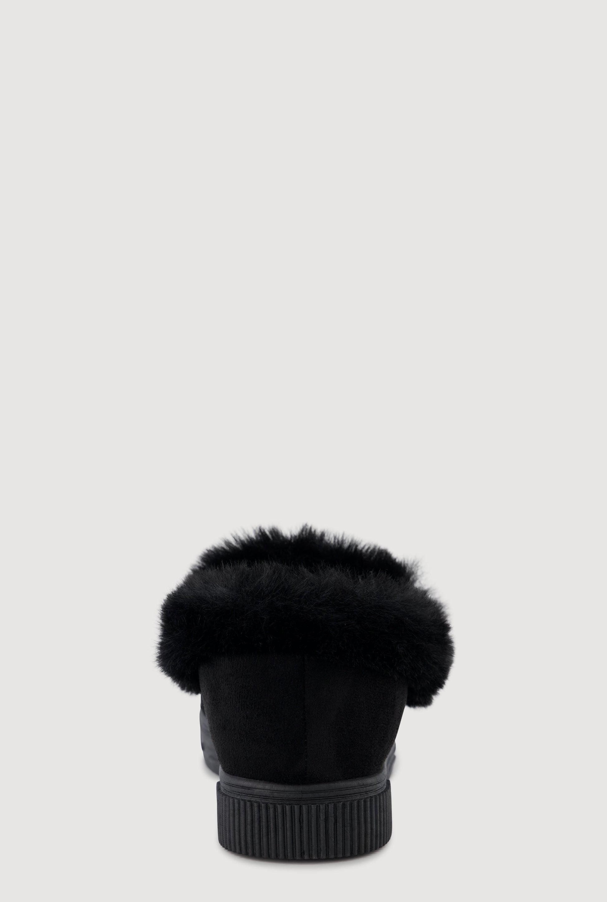 Trendy Faux Fur Lined Faux Suede Platform Moccasin Slippers